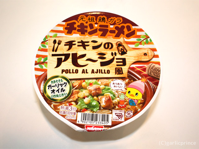 人気シリーズでテレビCMでもお馴染みの「チキンラーメン」にガーリックオイルの香りで有名なあのスペイン「アヒージョ」風にアレンジした「チキンラーメンどんぶり チキンのアヒージョ風」が2016年11月14日に登場しました。パッケージの表面には「食欲をそそるガーリックオイル」としっかり描かれております。アヒージョ独特のニンニクの香りがするのでしょうか?とても楽しみです。